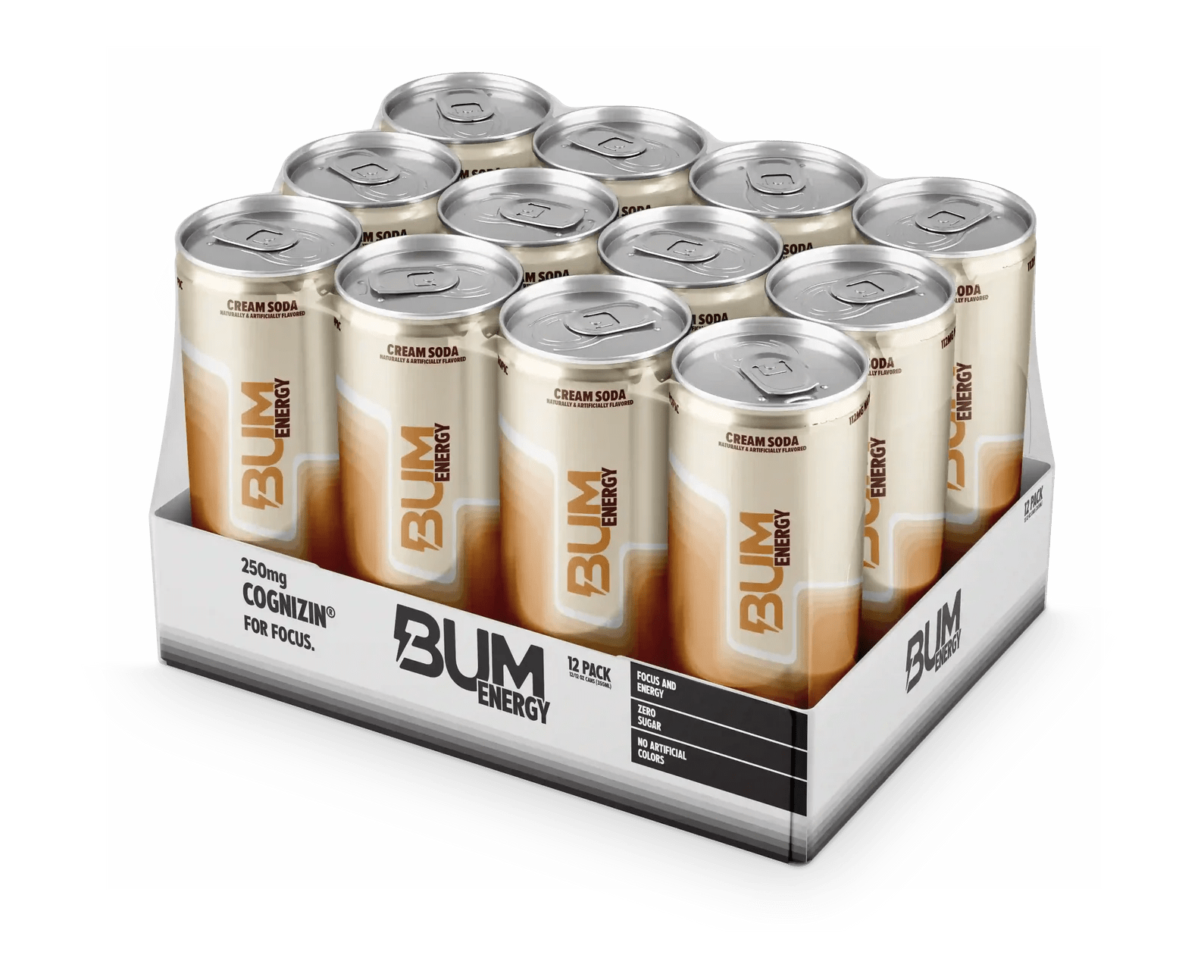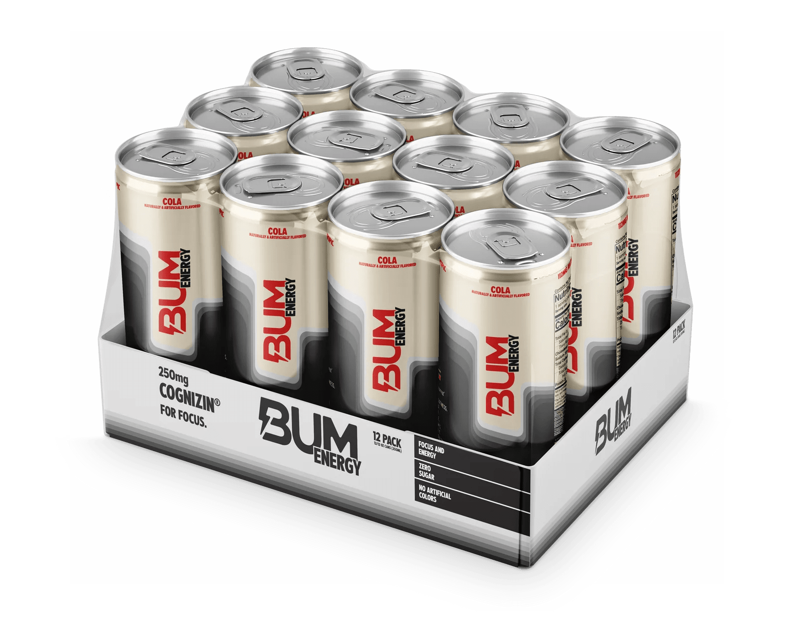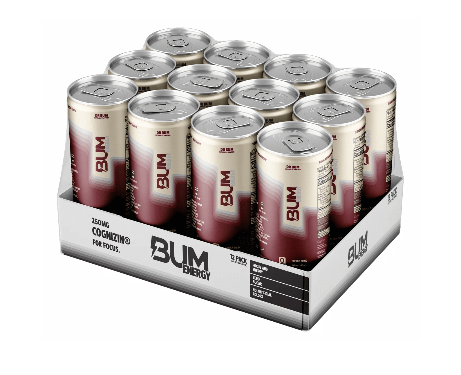 CBUM BUM Energy is Chris Bumstead's new Energy Drink which contains a moderate 112mg of caffeine, slightly more than a cup of coffee which allows you to consume a couple of cans per day without going over your daily caffeine allotment. This tasty energy drink also features 250mg of Cognizin branded Citicoline, zero sugar, no artificial flavours, and just 5 calories per can.